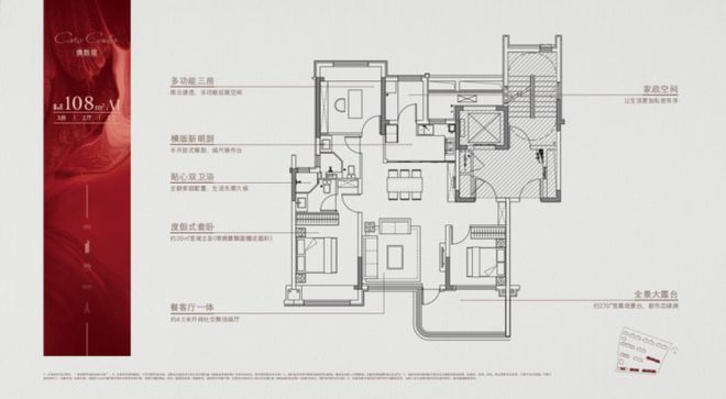 建面约108㎡三房两厅两卫,作为区域内罕有的小面积纯新洋房,总价可控,入手性价比非常高。