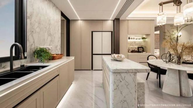 厨房配备老板的油烟机、灶具、洗碗机,欧琳的多功能水槽,而且餐边柜同样拥有尤为强大的储物收纳空间。